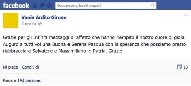 Terza Pasqua in India per i marò: l'appello dei fucilieri e delle famiglie corre sul web