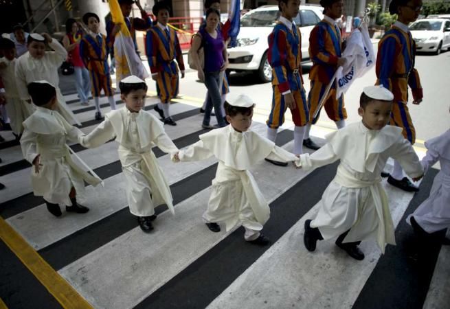 Piazza San Pietro, bimbi vestiti da papi per la canonizzazione di Wojtyla e Roncalli