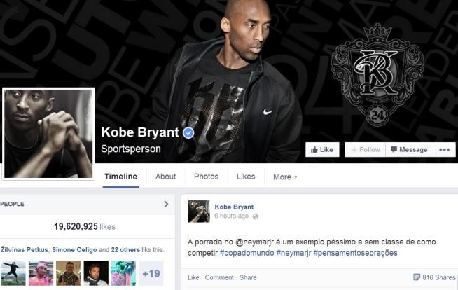 Neymar ko, Kobe Bryant attacca Zuniga: "Pessimo esempio"
