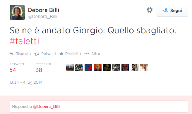 Debora Billi (M5S) twitta: "Se n'è andato Giorgio, quello sbagliato"