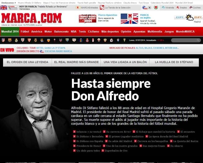 E' morto Alfredo Di Stefano: le prime pagine dei siti spagnoli e argentini