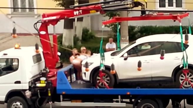 Russia, tutto pur di non farsi rimuovere l'auto: striptease sul carro attrezzi
