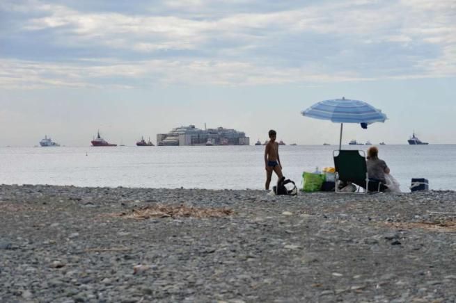 Concordia, curiosi sul lungomare di Genova Sull'A10 in molti rallentano per guardare
