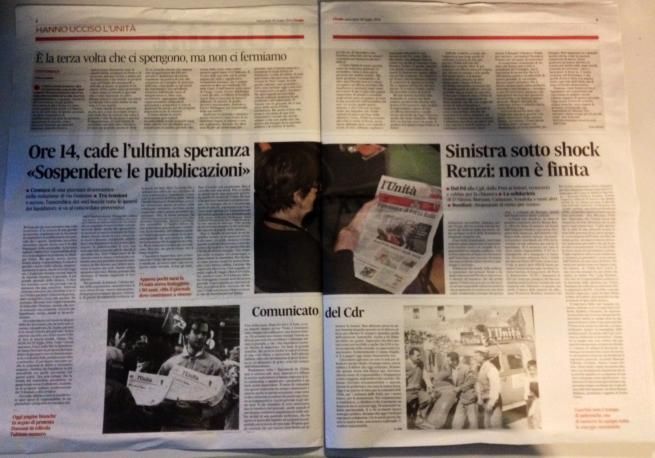 "L'Unità" chiude e per l'ultima copia il quotidiano di Gramsci va in bianco