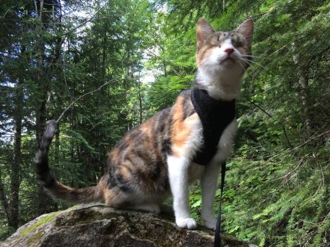 La storia di Honey Bell, la gattina cieca che passeggia nei boschi assieme ai padroni