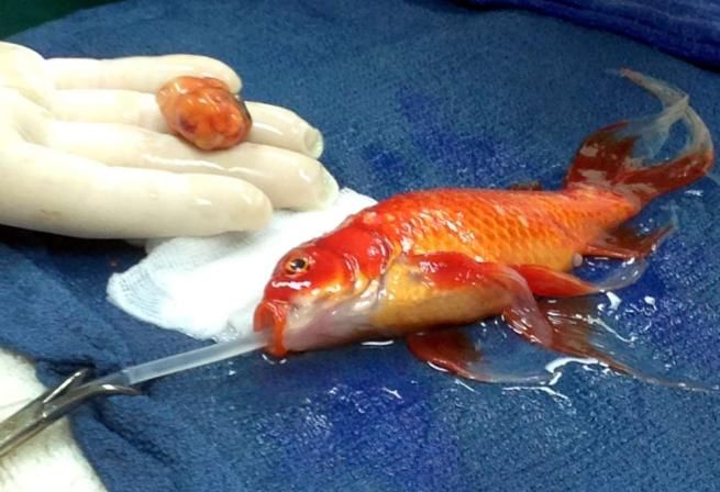 Pesce rosso operato per un tumore Un insolito intervento al cervello