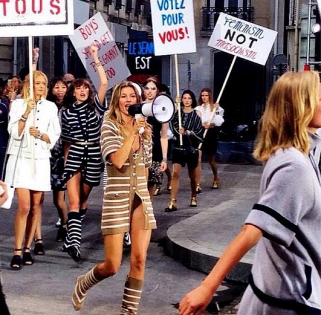 Parigi, Karl Lagerfeld ricrea un corteo femminista per la sua sfilata Chanel