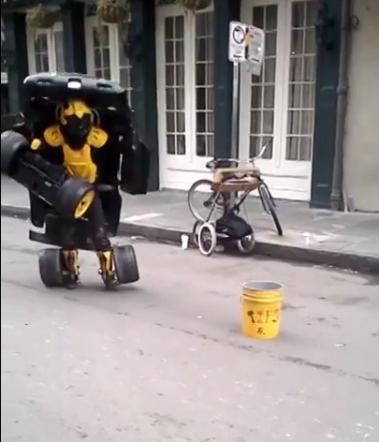 L'uomo-macchina fa divertire New Orleans: prima su due gambe poi su quattro ruote