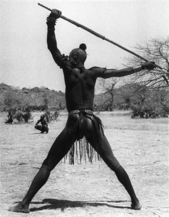 © ufficio-stampa|Un lottatore della tribù di Kao Nyaro sfida un compagno. Kordofan, Sudan. 1949. © George Rodger / Magnum Photos