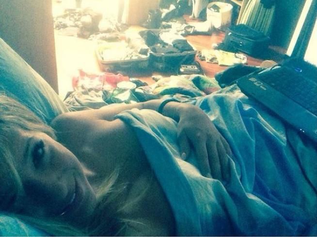 Giulia Calcaterra, a seno nudo nel letto