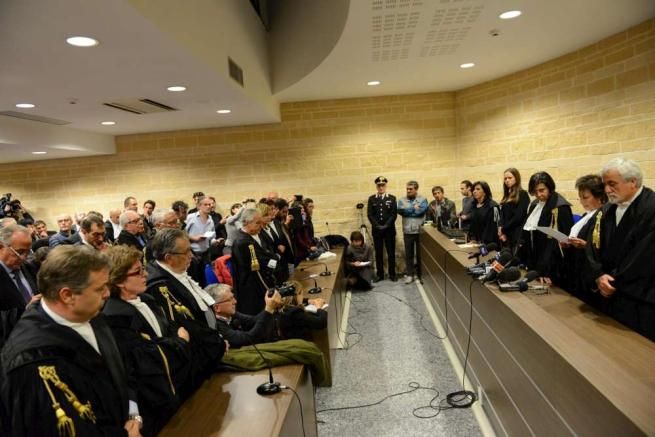 © ansa|Il momento della lettura della sentenza della Corte d'Appello dell'Aquila