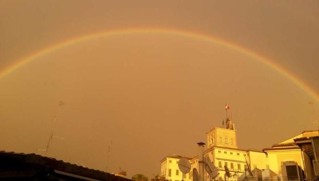 Magia a Roma, un doppio arcobaleno incornicia il Quirinale
