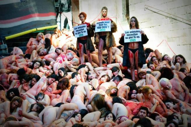 Barcellona, nudi e insanguinati: la protesta vegetariana in difesa degli animali