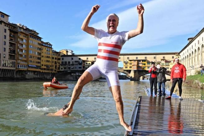 Firenze, si tuffano nell'Arno per festeggiare l'arrivo del nuovo anno