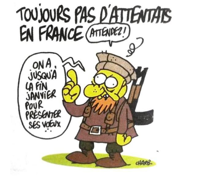 © twitter|La vignetta "premonitrice" pubblicata da Charlie Hebdo pochi giorni prima della strage