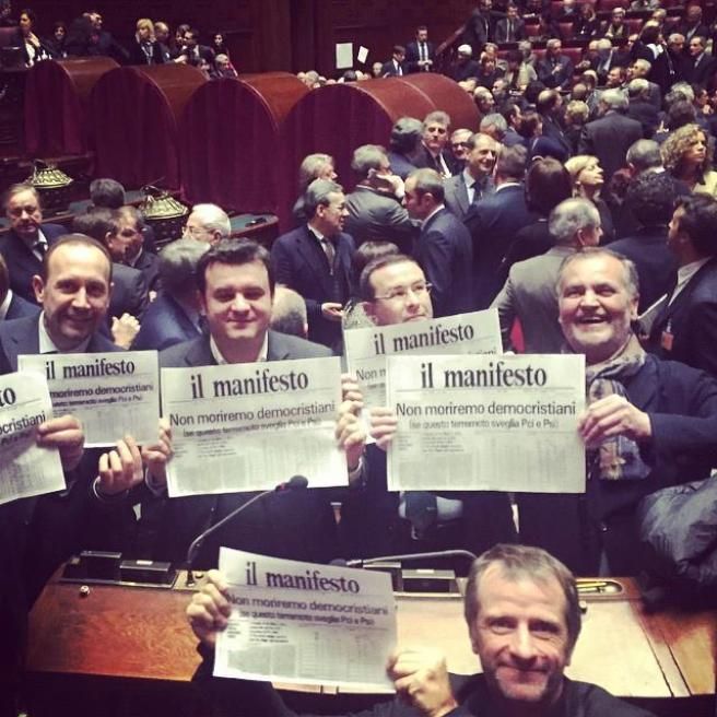 In Aula i cartelli di protesta della Lega: "Non moriremo democristiani"