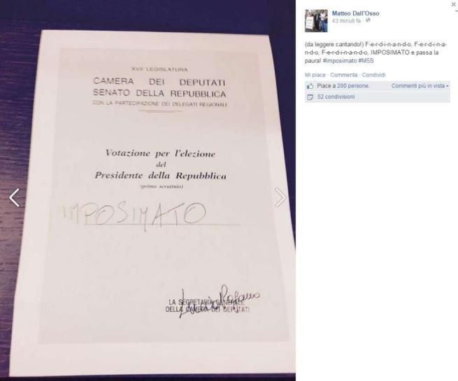 Online la scheda con il voto per il Colle, polemiche sui parlamentari M5S