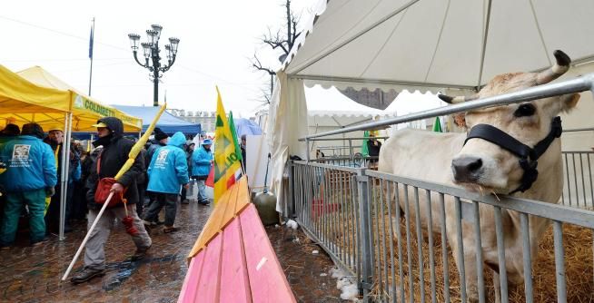 © ansa|La maxi-mungitura in piazza Castello, a Torino