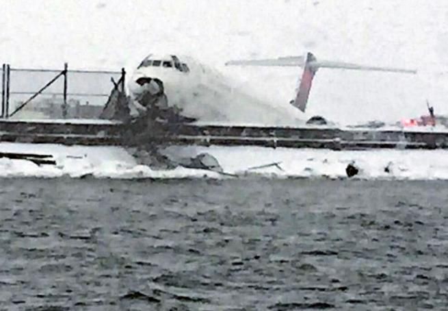 New York, aereo va fuori pista e si schianta contro recinzione durante bufera di neve