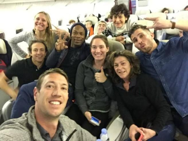 © facebook|Camille Muffat (al centro), Florence Arthaud (alla sua sinistra) e Alexis Vastine (a destra)