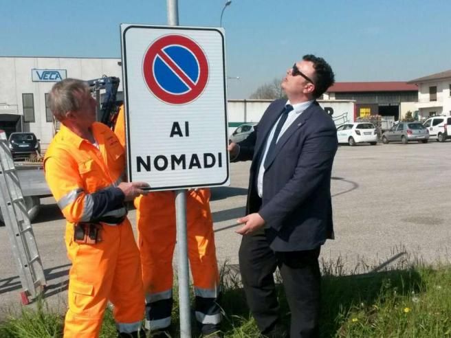 Il sindaco di Albettone (Vicenza) pianta un cartello di "divieto ai rom"