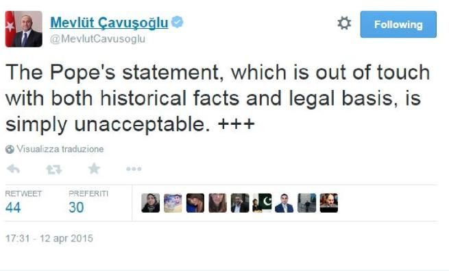 Armeni, Papa: primo genocidio del XX sec Ankara richiama l'ambasciatore in Vaticano