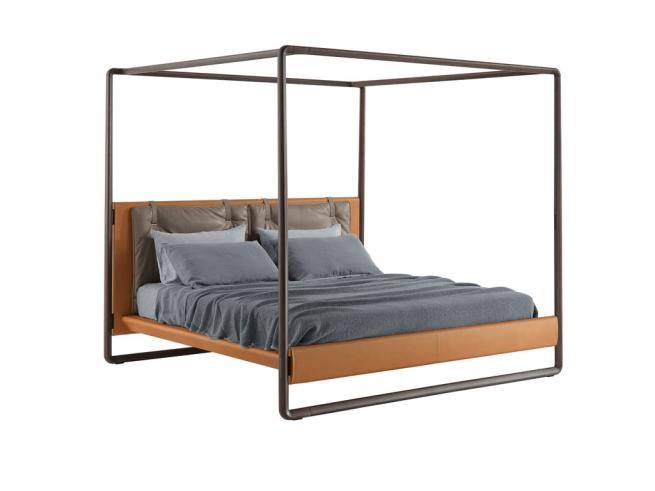 © dal-web|Cuoio toscano, finiture cucite a mano e struttura in legno massello per questo letto a baldacchino dalle linee leggerissime simbolo del Made in Italy - Volare di Roberto Lazzeroni per Poltrona Frau