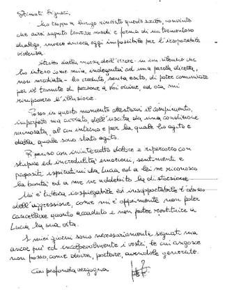 © dal-web|La lettera inviata dal carcere ai genitori di Lucia Bellucci