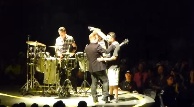 U2, The Edge non ricorda gli accordi e Bono fa suonare la chitarra a un fan