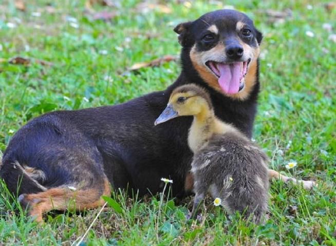 Cova un uovo e poi adotta l'anatroccolo: ecco Cloe, la cagnetta dal cuore d'oro