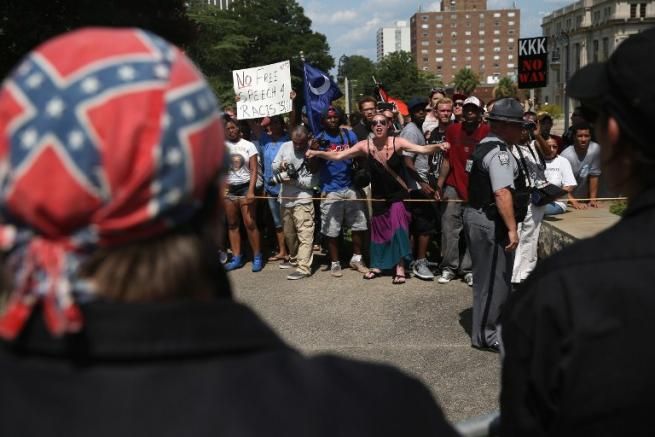 South Carolina, manifestazione del Ku Klux Klan tra bandiere sudiste e svastiche