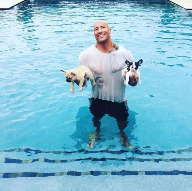 The Rock si improvvisa bagnino fuori dal set per i suoi cani