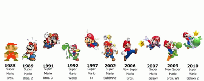 © ufficio-stampa|Le trasformazioni di Super Mario negli anni