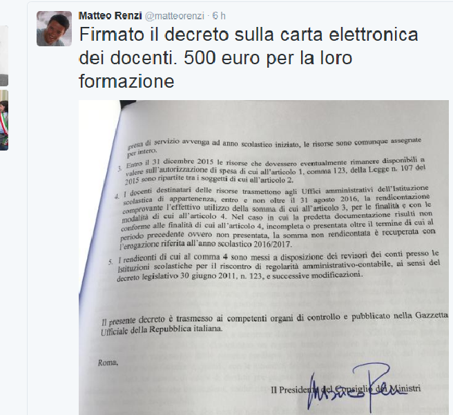 Buona Scuola, Renzi: 500 euro per la formazione docenti
