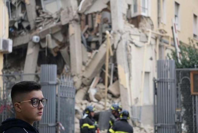 © ansa|Il rettore dell'Università degli Studi di Napoli Federico II, Gaetano Manfredi, davanti all'edificio crollato