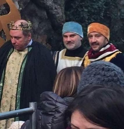 Milano, Matteo Salvini vestito da re magio nel presepe all'asilo della figlia