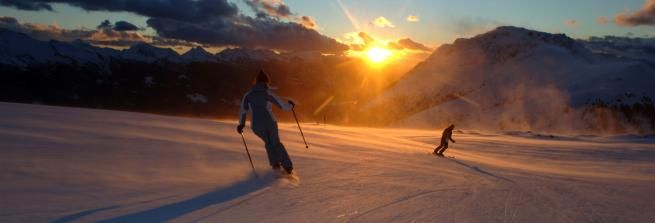 Trentino: sciare mentre il sole sorge sulle Dolomiti