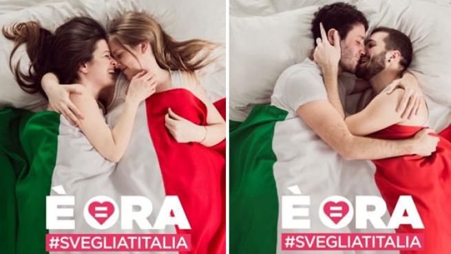 © ansa|La senatrice Monica Cirinnà durante il sit in per il ddl Cirinnà in piazza del Pantheon a Roma