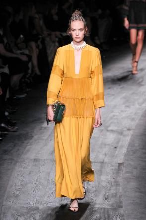 © web|Romantico abito lungo dalla linea morbida e sorretto da collier in legno, Valentino