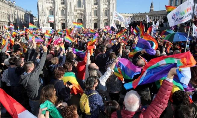 Unioni civili, piazza Duomo è arcobaleno Flash mob a Milano: "Tempo scaduto"