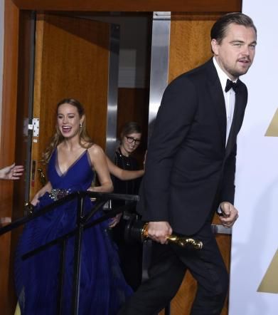 © ansa|Gli attori premiati: Mark Rylance, Brie Larson, Leonardo DiCaprio e Alicia Vikander