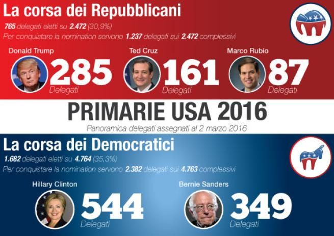Usa 2016, volano Trump e Hillary Clinton Dopo il super martedì partita quasi chiusa