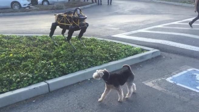 Il cane vero non dà tregua al cane robot: "Il migliore amico dell'uomo sono io!"