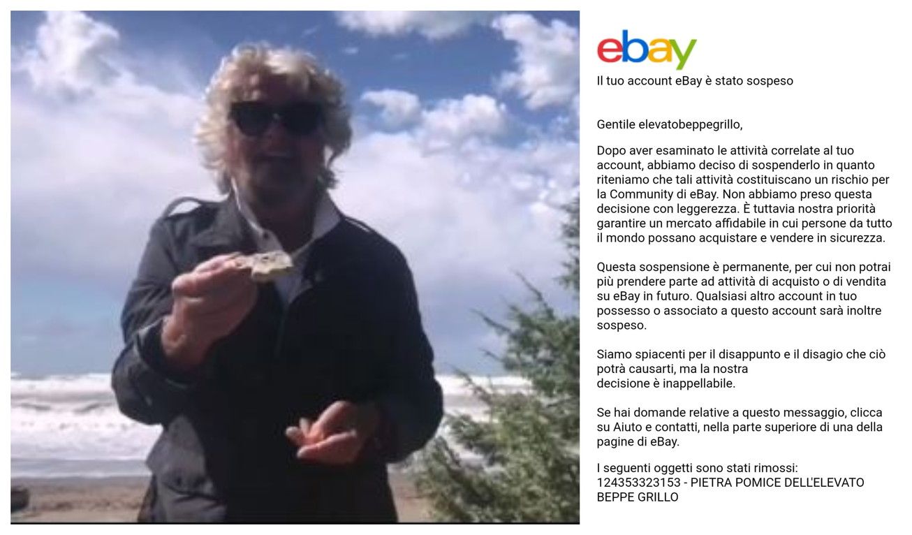 Beppe Grillo mette in vendita la "pietra pomice per pulire la stupidità": eBay gli cancella l'account