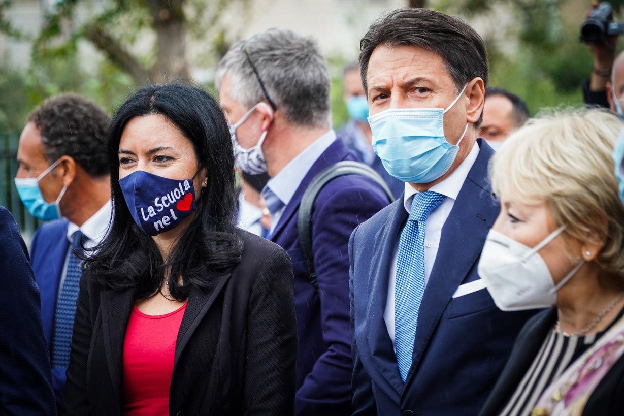 © Ansa|Il Premier Conte e la ministra dell'istruzione Azzolina in visita ad una scuola