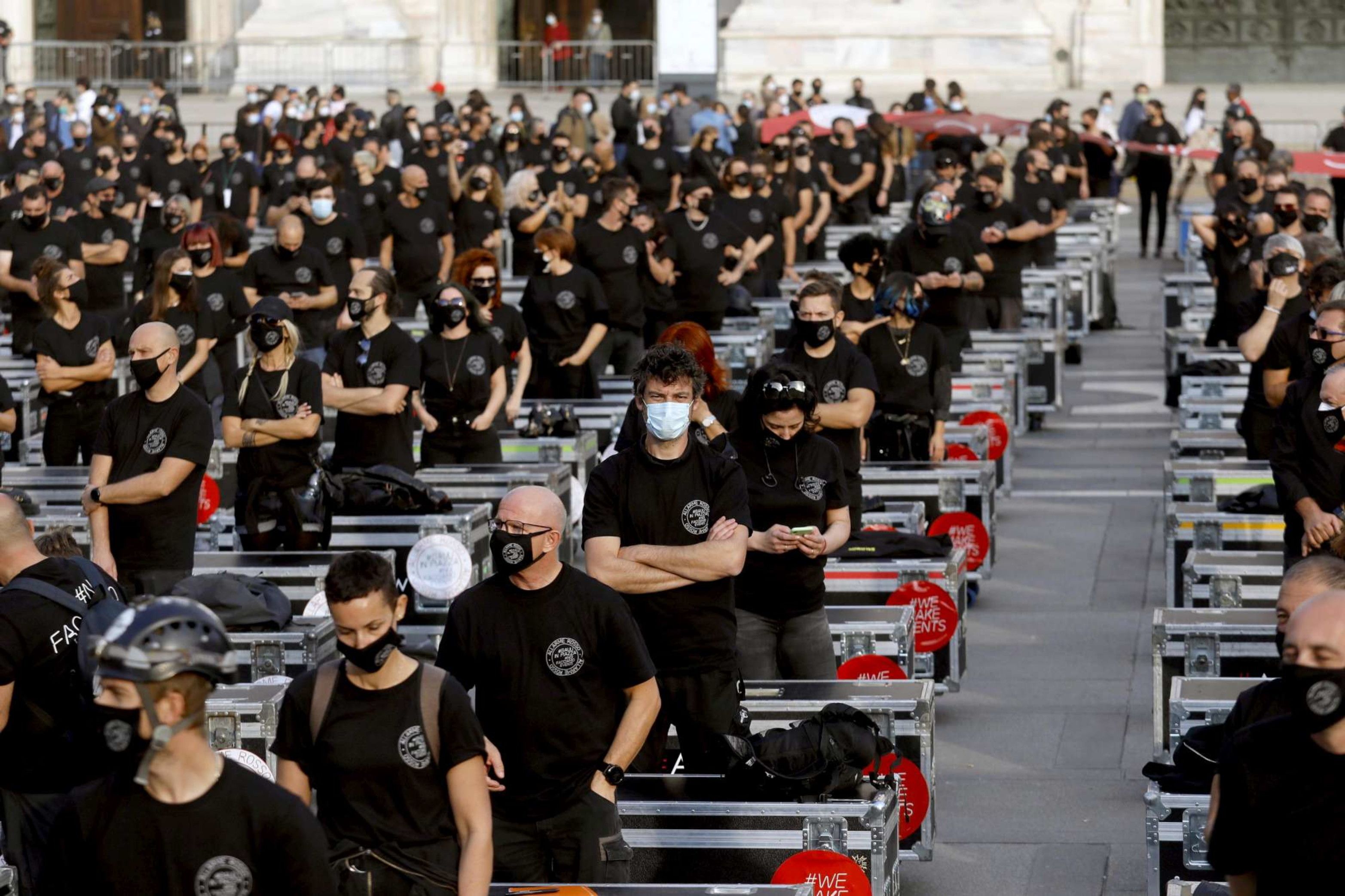 Protesta dei lavoratori dello spettacolo: 500 bauli in Piazza Duomo