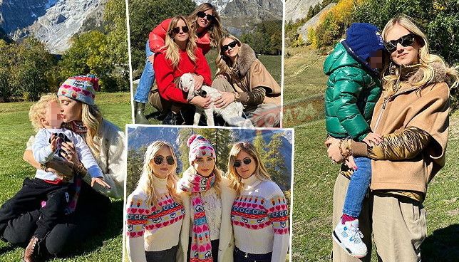 Chiara Ferragni in fuga sui monti con Leone e le sorelle