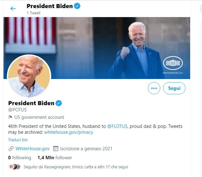 Biden "sfratta" Trump dall'account Twitter presidenziale (e Donald ha un nuovo profilo)
