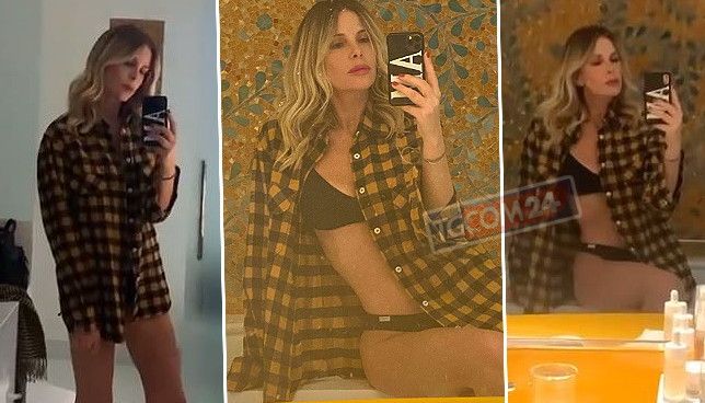 Alessia Marcuzzi stuzzica in slip e reggiseno, una sex bomb in bagno