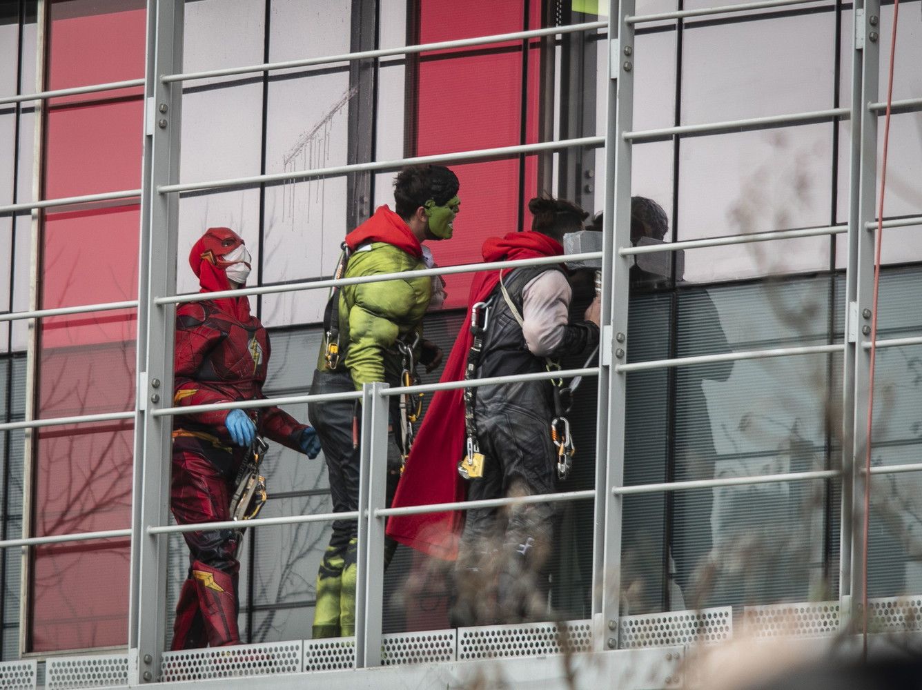 Bergamo, i supereroi si calano dal tetto dell'ospedale per salutare i bimbi ricoverati